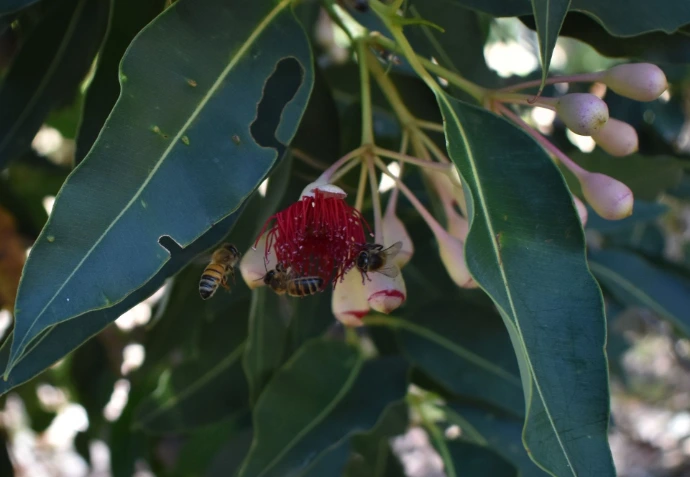 Depending on the weather and amount of rain, these trees begin flowering around November and will often continue into late Autumn and all of the blossoms produce sweet, fragrant nectar which the bees turn into equally sweet and fragrant honey.